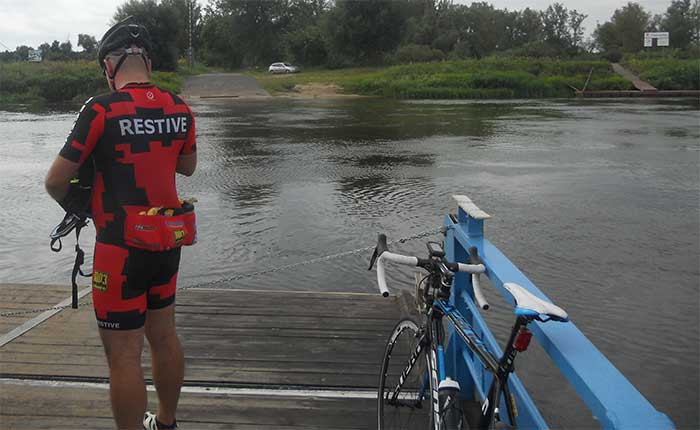 Z niecierpliwością oczekuję na zjazd w kierunku Warty. Jak ułoży się przeprawa startujących w kilkuminutowych odstępach grup? Spóźniamy się na prom o 2 może 4 metry. Możemy jedynie pomachać tym, którzy się tam znaleźli. Po kilku minutach to my jesteśmy tymi szczęśliwcami, a na brzegu pojawiają się kolejni zawodnicy.