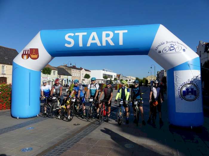 Po kilkudziesięciu kilometrach mija nas mała grupka zawodników startujących 10 minut po nas. Nie próbuje się do nich przyłączyć. Łykamy kolejne osoby z grupy startującej przed nami. Prędkość jazdy siada. W utworzonej dużej grupie nie widać woli współpracy, a może zawodnicy opadli już z sił. Grupa rwie się. Wychodzę na czolo, czekam na pozostalych. Wreszcie bez napierania ruszam do przodu. Przez chwilę widzę cień zawodnika jadącego z tyłu. Wreszcie i ten znika.