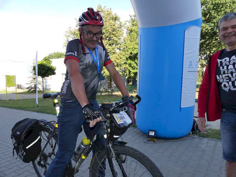 Czuję się doskonale więc nie oglądając się do tyłu robię swoje. Kiedy spojrzę do tyłu kilka kilometrów dalej po jadącej z tyłu grupie nie ma nawet śladu. Samotnie dojeżdżam do pierwszego punktu żywnościowego w Krajence. Zgodnie z planem nie zabawię tu nawet chwili dłużej aniżeli niezbędne minimum. Uzupełniam zapas wody. Z rąk Prezesa odbieram 2 słodkie bułki i ruszam dalej. Tym razem jestem dobrze aprowizowany więc ciepły posilek byłby niepotrzebną stratą czasu. Pozostawiam spożywajacych posilek zawodników. Kiedy opuszczam punkt mijam się z pierwszymi uczestnikami mojej grupy startowej.