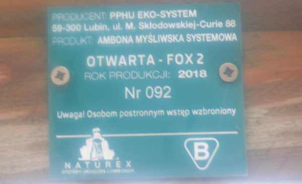 Po kilku kilometrach zatrzymujemy się ponownie. Miejsce jest bardziej niż oczywiste - niewielka ambona tuż obok drogi. Zagadką jest rozkminienie kodu który trzeba wysłać na podany numer. Która z informacji z tabliczki umieszczonej z tyłu ambony jest poszukiwanym kodem. Jaki jest klucz by ewentualne cyfry zamienić na odpowiednie litery? Ponownie wysyłam niewłaściwą odpowiedź. T88 - ambona systemowa otwarta - (11:10).
