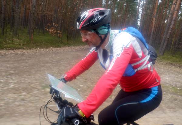 W ten sposób samodzielnie odnajduję pierwszy w tym roku punkt kontrolny. Przy kolejnych mój wkład w odnalezieniu punktów będzie się zmieniał a w wielu miejscach współudział będzie bardzo mocno naciągany. Kiedy zbiegam z wydmy nadciąga duża grupa rowerzystów. Wkrótce jedziemy razem z Bartoszem i znanym do tej pory z widzenia Pawłem Gorczycą. A przecież przed chwilą myślałem mocno o samodzielności. W ekspresowym tempie wyprzedza nas wielka trójca. Bronek, Krzysiek i Łukasz. Startują w innej, wyższej lidze. Z braku konkurencji ze strony Krystiana na spokojnie będą kontrolować sytuację na trasie zbaczając z niej nawet po to by zaliczyć pobliskie sklepy.