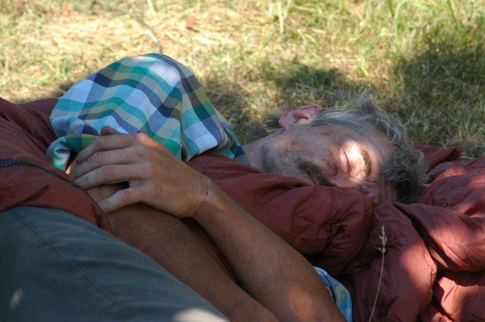 Dokucza kręgosłup. Czas pobytu na mecie zwiększa się o kolejne kilkadziesiąt sekund kiedy leżę na ławce rozprostowując się przez chwilę. Chyba wyglądam nieciekawie, ponieważ gość z obsługi systemu mierzenia czasu przynosi mi herbatę a później z własnej woli przesmarowuje mi wysuszony łańcuch. Wielkie dzieki!!!