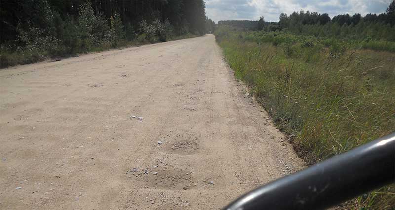 Wkrótce za mną dociera, mijany chwilę wcześniej na asfaltowej drodze, patrol Straży Granicznej. Zdają pewnie standardowe pytania: czy przekroczyłem granicę?, czy zamierzam przekraczać granicę? [Niby po co jeżeli za kilka lat standardy białoruskie mogą obowiązywać i po naszej stronie granicy]. Tłumaczę co w tym miejscu robię, wspominam o maratonie w którym biorę udział. Skoro to impreza zorganizowana to powinna być zgłoszona Straży. Przecież nie ja jestem organizatorem. Zresztą jakie ma to teraz znaczenie jeżeli większość uczestników przejechała tędy kilkanaście godzin wcześniej. Kończy się na wylegitymowaniu, sprawdzeniu w komputerze i spisaniu. Mogę jechać dalej.