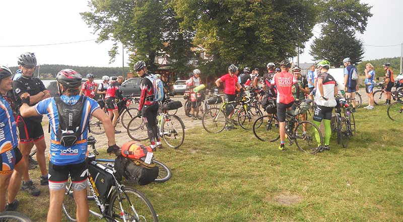 Montaż urządzeń śledzących i sprawdzenie ich niezawodności przedłuża się, podobnie jak przedstartowa odprawa. Na trasę wyruszamy o godz. 12:10 czyli z 10 minutowym opóźnieniem. Zgodnie z ustaleniami do odległego o 90 km miejsca startu ostrego pojedziemy w kilkunastoosobowych grupkach.