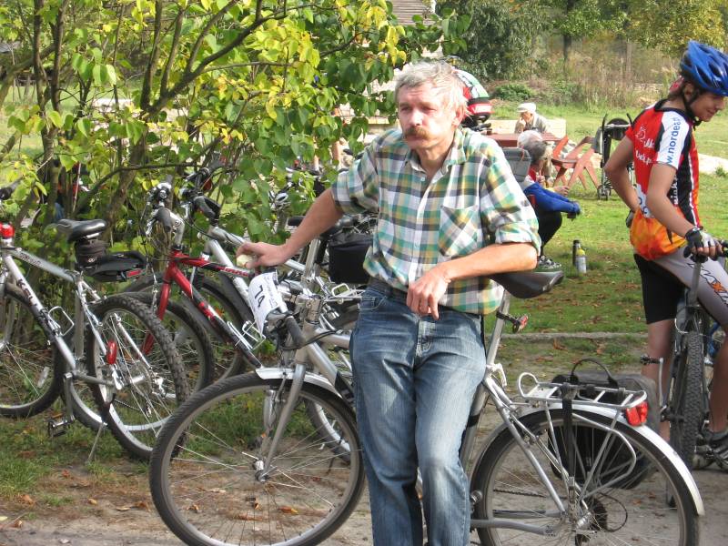 Zaczyna się powrót. Proste, bezproblemowe drogi. Gdzies po drodze mijam, męczacego się na podjezdzie Cześka Pacholca. Nieoczekiwaną przeszkodą na trasie jest podjazd pod wzgórze przed stacją telekomunikacyjną. W nogach mam już 40 km, a droga jest mocno wyboista.To sprawia że ten odcinek jest najtrudniejszy na całej trasie. Miesnie stają się twarde, bolesne. Czyżby skończyło się skurczem. Tu jeszcze nie. Gorzej jest kiedy wchodzę po kilkunastu schodkach przy wiadukcie pod ul. Strykowska. Tu z każdym krokiem ból narasta i mocna zastanawiam się czy wejscie nie skonczy się w pewnym momencie skurczem. Uff!!! W połowie schodków ból jakby mija. Pozostaje juz tylko ostatnie kilka kilometrów po niemal płaskich drogach. Wpadam na metę "pod modrzewiami" i zastaję tu już kilkudziesięciu bikerów. Pozniej wyjaśnia się, ze ci co czekali w wiekszosci byli kibicami, którzy nie odwazyli się na start w imprezie. Powoli, bardzo powoli zjażdżają sie kolejni.