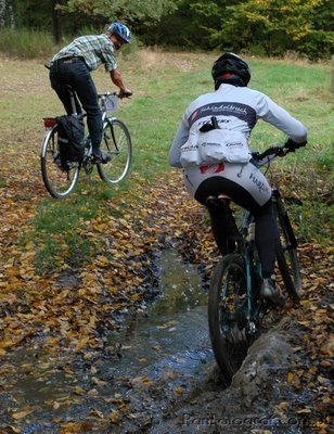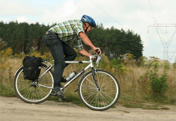 [Wtedy nie poznałem, później się dowiem, że to Generał - Zbigniew Szałapski. Oto jak zapamiętał spotkanie ze mną w notce na forum Cyklomaniaka - W lesie dobieszkowskim dopadłem starszego gościa przebranego za wieśniaka (flanelowa koszula w kratę, nogawki dżinsów wpuszczone w skarpetki, sacvoyage przy tylnym bagażniku). Chyba znalazł się tam przypadkowo.]