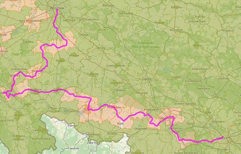 Jadąc na wschód, zaliczę pozostałe gminy Opolszczyzny: Kamiennik, Pakosłąwice, Nysa, Korfantów, Biała, Walce. Po raz pierwszy nie muszę się nigdzie śpieszyć. Powiem więcej, nie mogę się nigdzie śpieszyć. Prom na Odrze w Zdzieszowicach pierwszy kurs ma o godz. 5:00.