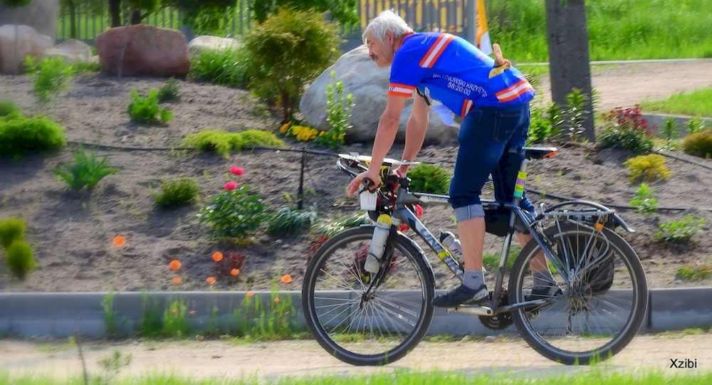 Chociaż staram się kontrolować odległości, na wielu gruntowych odcinkach jest to zupełnie niepotrzebne. Wystarczy patrzeć pod koła i obserwować odciśnięte w podłożu ślady. Obok jeziorka odpoczywa kilku bikerów. Ślady wydeptane w bujnej roślinności na grobli, prowadzą do drzewa kilkanaście metrów dalej. PK22 - na grobli (14:30, 88,6).