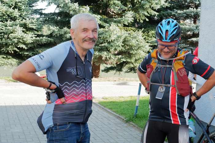 Arek pochodzi z Pabianic, więc rozmawiamy o zakończonym niedawno maratonie Wschód, w którym brało udział kilku pabianiczan. Arek potwierdza, że koledzy startujący w maratonie nie dorastają do pięt Sylwii, która ukończyła zawody w czołówce, jako 2 kobieta, zajmując kategorii open 21 pozycję. Rozmowa z jednej strony sprawia, że jedzie się łatwiej, z drugiej ... czy my nie powinniśmy tutaj skręcić? Odchodząca w bok polna droga, z przodu widoczny szczyt wzniesienia. Niby wszystko się zgadza. Niby!?!. Chwilę później droga na wprost kończy się, gdzieś z boku znajdujemy jej kontynuację. Nie tak to wygląda na mapie. Później okaże się, że skręciliśmy zbyt wcześnie. Najlepsze wyjście z tej sytuacji to zjazd na dół do prostopadłej drogi, odnalezienie tej właściwej i atakowanie celu od południa.