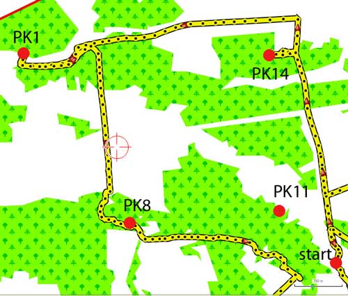Problemy z wyborem optymalnej kolejności zaliczania punktów (dystans 92 km przy optymalnym 75 km). Problemy z wyborem optymalnego przejazdu pomiędzy punktami. Niezauważanie mijanych w pobliżu punktów (PK11). Niewybaczalne błędy przy poszukiwaniu punktów (PK10) czy nawet odnalezieniem swojego miejsca na mapie (PK15). Do tego dokuczające mi skurcze łydek. Być może najlepszym podsumowaniem tego co wyczyniałem na trasie byłoby określenie, że jeździłem jak pijany zając. Zdecydowanie - To nie był mój dzień.