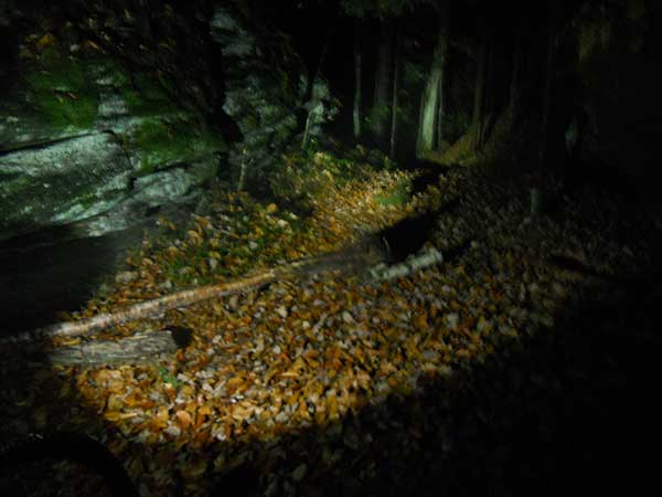 Był podjazd, więc będzie i zjazd. Nie ma się co cieszyć. Wygląd drogi niewiele się zmienia. Przy uważnej jeździe udaje się utrzymać równowagę i wolno poruszać do przodu. Coraz większym problemem staje się stan moich hamulców. Pomimo, że klocki hamulcowe wymieniałem kilka dni przed wyjazdem teraz ich grubość zbliża się niebezpiecznie do zera. Mokry piach i liczne zjazdy w ciemnościach wykonały tu swoją robotę. Jedyne na co mogę liczyć to powrót na bardziej płaskie i mniej piaszczyste tereny. Jeżeli nic się nie zmieni, przyjdzie hamować wysuniętą do dołu stopą.