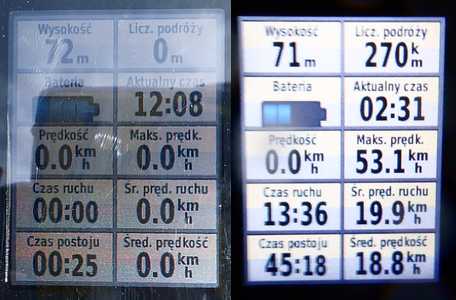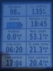 Przez dłuższy czas widzę rozświetlone zabytki położonego na wysokim przeciwległym brzegu rzeki miasta Pyzdry. Wreszcie opuszczam nadwarciańskie piachy przejeżdżam przez most i znajduję się po tej właściwej stronie Warty. Mija 11 godzina od startu. Do mety pozostało nieco ponad 60km. Drogi stają się nieco lepsze. Odliczam kilometry dzielące mnie od miejsca skąd rozpocząłem zmagania. Spoglądam na mijający czas. Wreszcie wgrany do Garmina ślad kończy się. Meta: godz. 2:31. Czas pokonania całości 14:23. Ze względu na różne warunki trudno porównywać go z tymi uzyskiwanymi podczas oficjalnego maratonu.