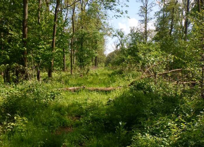 Szutrowa droga pod wiatr na początku maratonu nie robi na mnie dużego wrażenia. Chwilę później zaskakuje mnie widok zarastającej bujną roślinnością drogi wzdłuż wypełnionego brązową gnijącą breją kanału. Nieco dalej pojawia się kilka powalonych drzew. Tego się nie spodziewałem. Teren wyjątkowo malowniczy ale gdy trzeba go pokonać rowerem staje się udręką. Jadę wolno i pełen obaw. Nie wiem czy pod trawą nie kryje się jakaś gałąź, czy nie wpadnę w jakiś niewidoczny dół. Pomimo, że spodnie spryskałem wcześnie repelentem, myślę o czających się w trawie kleszczach. Czy to już pierwsze objawy kleszczofobii?
