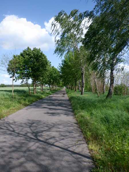 Każdy koszmar musi się kiedyś skończyć. Po niespełna kilometrze pojawia się zwykła gruntowa droga. Staram się myśleć pozytywnie. To znaczy, że jest to niezbędny łącznik a nie celowe upupienie uczestników lub ubarwianie trasy maratonu przez organizatorów. Wkrótce jest nagroda - trochę równiuteńkiego asfaltu. Wiatr wzmaga się. Teraz mam go z boku. W podmuchach zwisające brzozowe gałązki próbują przyjąć poziomy kierunek. Pocieszam się, że na okrężnej trasie nadejdzie ten moment gdy wiatr będzie moim sprzymierzeńcem.