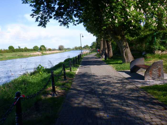 Opuszczam rogalińskie lasy. Kolejny cel na trasie maratonu to Śrem. Na pytanie jak wygląda miasteczko, nie odpowiem. Centrum i jego okolice mijam jadąc nadwarciańskimi bulwarami. Barierki, ławeczki, nieliczni spacerowicze. Co chwila z boku pojawia się kolejny kamienny dostojnik. W nocy można by się trochę przestraszyć. Dobra nawierzchnia nie zapowiada, tego co mnie czeka gdy zagospodarowane nabrzeże skończy się.