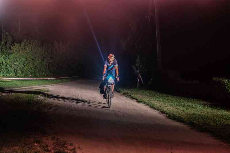 No dobrze, zdecydowanie zacząłem walkę o przeżycie. Jedzie się ciężko. Coraz częściej myślę o tym by zatrzymać się. Tylko wieczorne ochłodzenie sprawia, że pomimo zmęczenia jadę dalej. Mam też wrażenie, że teren stał się bardziej płaski i nie muszę walczyć z kolejnymi podjazdami. Powoli ściemnia się. Nocne zjazdy po niezbyt równych drogach to chyba nie najlepszy pomysł. Wykoszona i nieogrodzona łąka na szczycie wzniesienia wydaje się doskonałym miejscem na nocleg. Byłaby gdyby nie znajdowała się bezpośrednio obok jeziora. Wkrótce pojawią się tu chmary komarów. Przez chwilę rozmawiam z nadjeżdżającymi Łukaszem i Pawłem, którzy wybrali nocną jazdę i kładę się spać. Później minie mnie jeszcze kilku zawowodników.