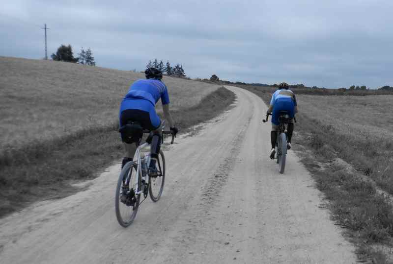 Chociaż droga jest bardzo urozmaicona, to w końcowej części trasy wiele odcinków pamiętam tylko jako jadną długą szutrową wstęgę. Półmetek trasy minąłem gdzieś pomiędzy wiaduktami w Stańczykach i Kiepojcach. Moim celem staje się kolejno 200, 150, 100 km do bazy. Odliczam każde kolejne dziesiątki kilometrów. Pokonanie kolejnych granic wlewa nowe siły i nadzieję na pokonanie całości.