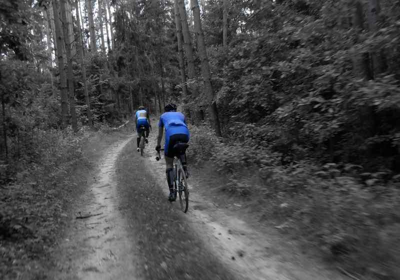 Punktualnie o 7:00 ponad 100 uczestników obu tras (200 i 500 km) rusza w teren. Dość szybko znajduję się w czołowej grupie. Wśród kilkunastu bikerów znaleźli się tu też znajomi z maratonów na orientację Łukasz i Paweł. Odpuszczamy nieco czołówkę. 500-tka to nie wyścig, na którym trzeba napierać już od pierwszych kilometrów. Szutrowe drogi i asfalty przeplatają się z leśnymi drogami. Po niespełna pół godzinie jazdy i pokonaniu kilkunastu kilometrów uczestnicy trasy 200 i 500 km rozdzielają się. Widzę znikających w oddali tych, którzy wybrali krótszą turystyczną trasę. Czy i ilu zawodników pojechało na długą trasę nie zdołałem zauważyć.