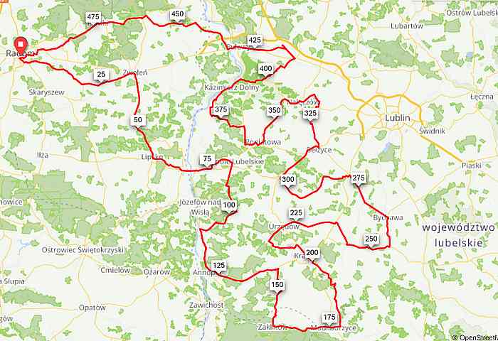 Niemal płaski teren i sprzyjająca pogoda (umiarkowana temperatura i słaby wiatr) sprawia, że wytyczam trasę o długości ok. 500 km. Na pokonanie całości będę miał 28 godzin. W przypadku nieprzewidzianych trudności nawet 4 godziny więcej. Trasa będzie prowadziła przez 38 nowych gmin. Przez kilka innych przejadę po raz kolejny.