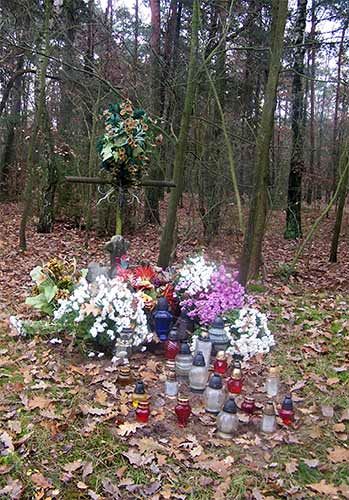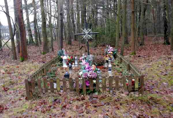 Po kilku kolejnych kilometrach wjeżdżam do wsi Sobień bez problemu odnajdując mogiłę na skraju lasu. Miejsce wydaje mi się dość znajome. Przypadek? Po powrocie do domu sprawdzam, że był to punkt zaznaczony na mapie Mogiły i cmentarze z I wojny światowej. Po ponad 5 latach od czasu gdy je wtedy odwiedziłem wydaje się być bardziej zadbane.