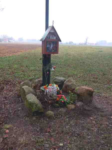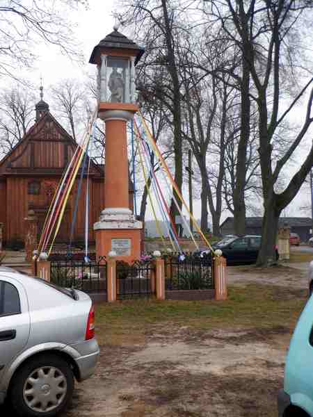Przede mną kilkunastokilometrowy odcinek dzielący mnie od najdalszego od miejsca startu a położonego w północno-zachodnim narożniku mapy punktu. Jadąc przez cały czas asfaltowymi drogami mijam nawet w najbliższej odległości zaliczone już pól roku wcześniej punkty. Moim sprzymierzeńcem jest lekki wiatr. Św. Florian otoczony samochodami (jest niedziela) znajduje się na placu przed tutejszym drewnianym kościółkiem. Za komuny koościół pomalowany był żółtą "sraczkowatą" farbą. Za unijne pieniążki odzyskał swój pierwotny blask.