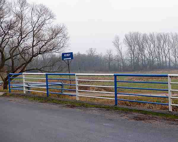 Pora roku sprzyjająca jeździe gruntowymi drogami nie jest optymalna do jazdy przez łąki. To co w suchej porze jest przyjemnością teraz jest wyzwaniem, którego muszę się podjąć by zdobyć znajdujący się w stosunkowo niewielkiej odległości punkt. Na początek ryzykuję przeskok przez obetonowany przepusty nad płynącą poniżej rzeczką. Dalej jest jeszcze jakiś wąski wypełniony woda rów i kawal podmokłej łąki. W górę wzbija się duże stado wielkich ptaszydeł. Sądząc po wydawanych odgłosów jest to gęsia kolonia. Są szybsze ode mnie i na zdjęciu które chcę im zrobic widać jedynie zalaną wodą łąkę. Sprawdzoną metodą wrzucam najlżejsze przełożenie i ruszam do przodu - byle tylko nie zatrzymać się na podmokłej łące. Porządny mostek nad pokonaną wcześniej Kucinką (od nazwy pobliskiej miejscowości) jest celem tej przeprawy. Droga przechodząca przez mostek prowadzi przez łąki i groblą pomiędzy stawami prosto do mostu i asfaltowej drogi