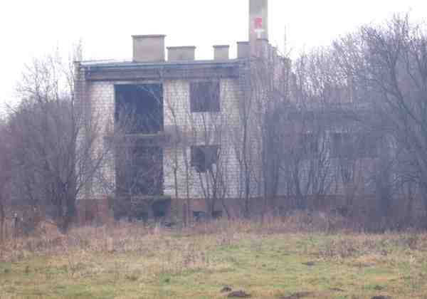 Czy ktoś wie jak wygląda baza kontumacyjna? Właśnie jadę by to sprawdzić. Pierwsze podejście nieudane. Wjeżdżam we właściwą drogę ale zawracam nie docierając do obiektu. Kiedy nie znajdując innej drogi widzę popełniony mijam ruiny domu i podjeżdżam do znajdujacej się kilkadziesiąt metrów dalej hali. Treść tabliczki potwierdza, że jestem we właściwym miejscu.