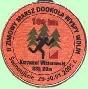 Teraz już w trójkę zastanawiamy się nad zakończeniem maratonu i ewentualnymi drogami ewakuacji. Myślimy nawet o taksówce. Można przecież zadzwonić, tylko jak określić miejsce w którym jesteśmy. Musimy iść dalej, tu nie ma nawet przystanku autobusowego. Dochodzimy do poprzecznej drogi. Proponuję Wisełkę. Później odgłos przejeżdżającego pociągu zmienia nasze plany. Zawracamy i idziemy w przeciwnym kierunku do stacji kolejowej w Warnowie. Mnie coraz uporczywiej dokucza kręgosłup. Nie pomagają wykonywane w marszu ćwiczenia. Pora roku wyklucza chociażby najkrótszy odpoczynek i leżenie w pozycji poziomej. Robi się coraz zimniej, idę coraz wolniej. Tylko prześpieszenie kroku mogłoby rozgrzać zziębnięte ciało a przyśpieszyć się już nie da. Wreszcie pierwsze zabudowania. Nieoczekiwanie napotykamy też drzewo z zaznaczonym PK16. Tego w planach nie mieliśmy. Koncentrując się na chęci zakończenia maratonu i dojścia do stacji nie zauważamy, że tak przy okazji można zaliczyć kolejny punkt. Trudno by z tego prezentu nie skorzystać. Kończymy maraton na 104 km po 23 godzinach i 20 minutach marszu. Co daje średnią 4,5 km/godz.