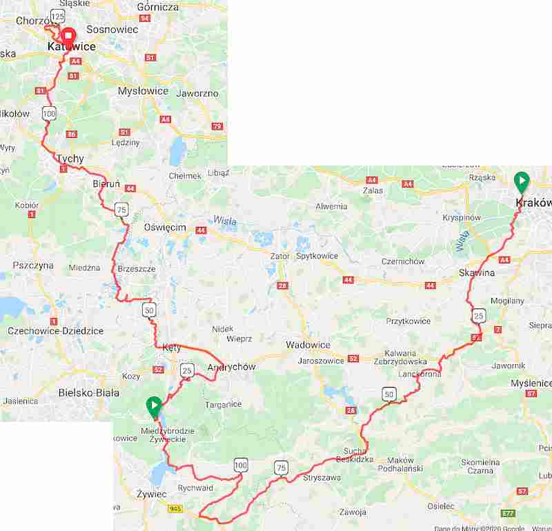 Pocz±tkowo planujê objazd terenów na zachód od Poznania, przez dziewicze dla mnie gminy. Sobotnio-niedzielne 300 km gminobranie zakoñczy³bym odwiedzaj±c rano zawodników szykuj±cych siê do startu we w³a¶ciwym maratonie. Mail od mieszkaj±cego w Krakowie Piotrka wszystko zmienia. Propozycja planowanej ju¿ wcze¶niej 2 dniowej wycieczki koñcz±cej siê w Katowicach wydaje siê du¿o bardziej atrakcyjna. Wielkopolskie gminy bêd± musia³y poczekaæ na swoj± kolej.