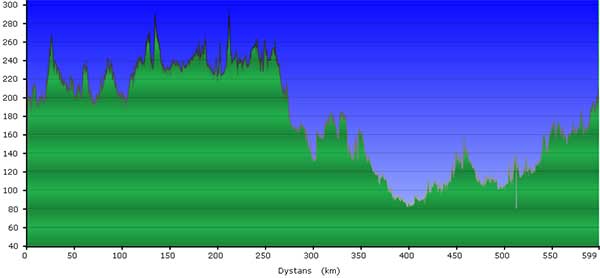 Mijam, Częstochowę i wykręcam na wschód. Długi odcinek jazdy ze sprzyjającym wiatrem. Drogi wojewódzkie. Mijam Koniecpol, Włoszczową (200 km). Powoli wykręcam na południowy-wschód. Wiatr w dalszym ciągu sprzyjający. Mijam Końskie, Przysuchę. Nowe Miasto nad Pilicą osiągam już po zmroku. Zaliczam 300 km czyli tą łatwiejszą część trasy. Czas na chwilę odpoczynku i dużą porcję makaronu. Szybko wskakuję na rower. Jadąc nie zauważyłem, że zrobiło się już bardzo zimno.